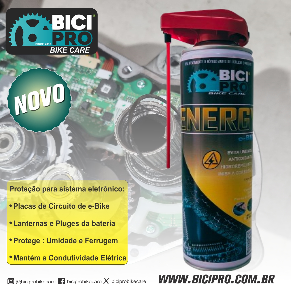 ENERGY e-Bike BICIPRO – Foi desenvolvido com NANOPARTÍCULAS que aderem e protegem os contatos elétricos e eletrônicos. Faz a proteção e mantém a condutividade em conectores de energia das baterias, faróis de iluminação, lanternas de segurança, eletrônicos e placas de circuito impresso dos eletrônicos que continuam em funcionamento ao entrar em contato com água, umidade e temperatura negativa.