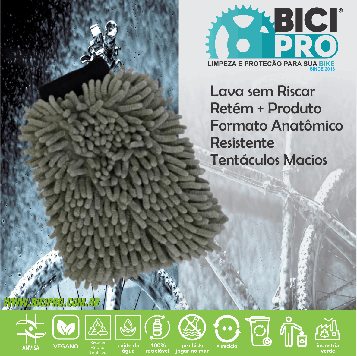INDICADA – Perfeita para lavagem da bicicletas e proporciona ótimo rendimento e limpeza. Seus tentáculos feitos de microfibra, permitem a retenção de produto e facilita na lavagem e economiza produto e facilita na remoção de sujeiras, não risca.